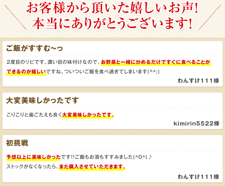 コリコリとした歯ごたえで、子供たちのご飯もすすみます。炭火であぶってもおいしいですよ。